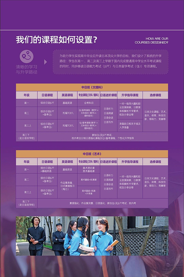 优势一 :科学的2.5+1双轨学制,无缝衔接日本大学
